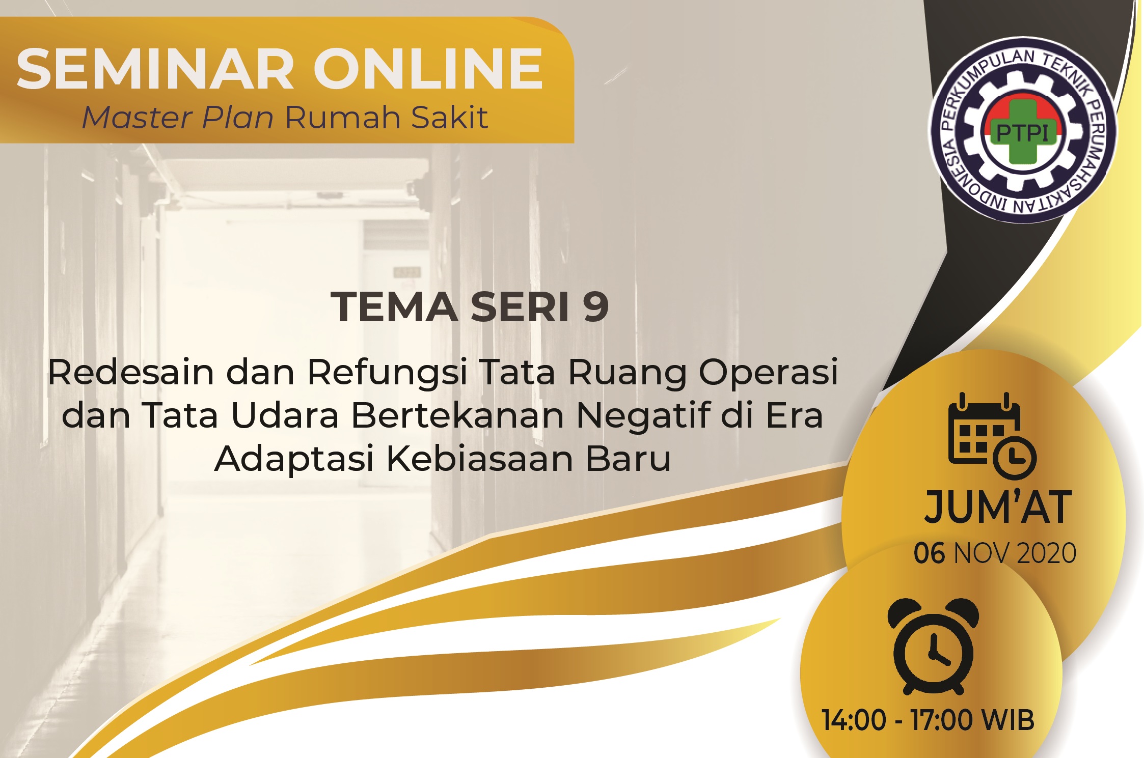 Terimakasih banyak kami ucapkan kepada semua peserta yang telah mendaftarkan diri pada Seminar Seri 9: Master Plan Rumah Sakit Dengan Tema "Redesain dan Refungsi Tata Ruang Operasi dan Tata Udara Bertekanan Negatif di Era Adaptasi Kebiasaan Baru"
